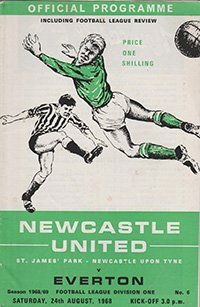 Match: Newcastle United v Everton Competition: League Division 1 Date: 24-08-1968 Comments: Rating: 3 Condition: Slight fold, marks on cover, writing inside Weight in grams: 60
