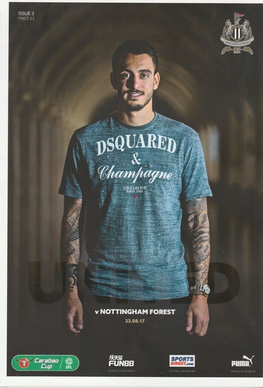 Match: Newcastle United v Nottingham Forest Competition: League Cup 2nd Round Date: 23-Aug-2017 Comments: Rating: 4 Condition: Faint marks on back page Weight in grams: 200