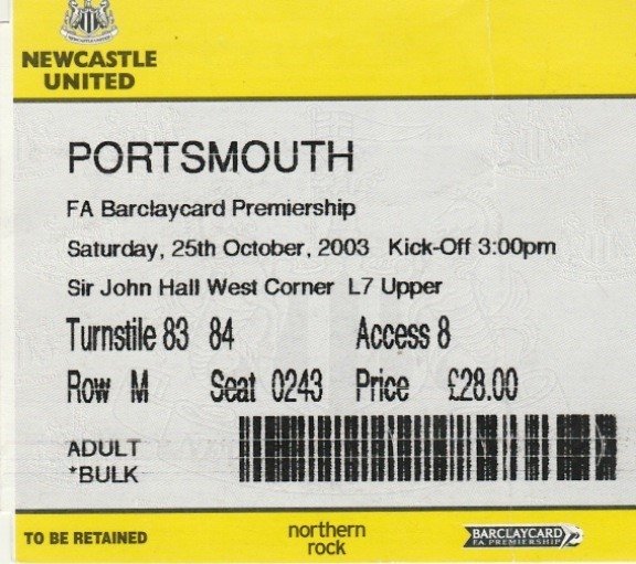 Match: Newcastle United v Portsmouth Competition: Premier League Date: 25-Oct-2003 Comments: Rating: 4 Condition: Light fold Weight in grams: 10