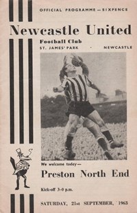 Match: Newcastle United v Preston North End Competition: League Division 2 Date: 21-09-1963 Comments: Rating: 3 Condition: Small piece missing off edge of back pages Weight in grams: 40