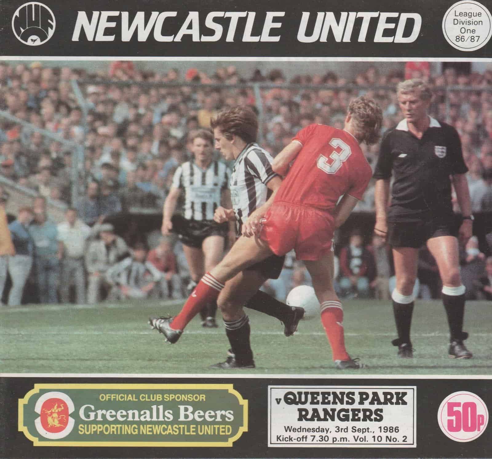 Match: Newcastle United v Queens Park Rangers Competition: League Division 1 Date: 03-Sep-1986 Comments: Rating: 4 Condition: Very good Weight in grams: 100