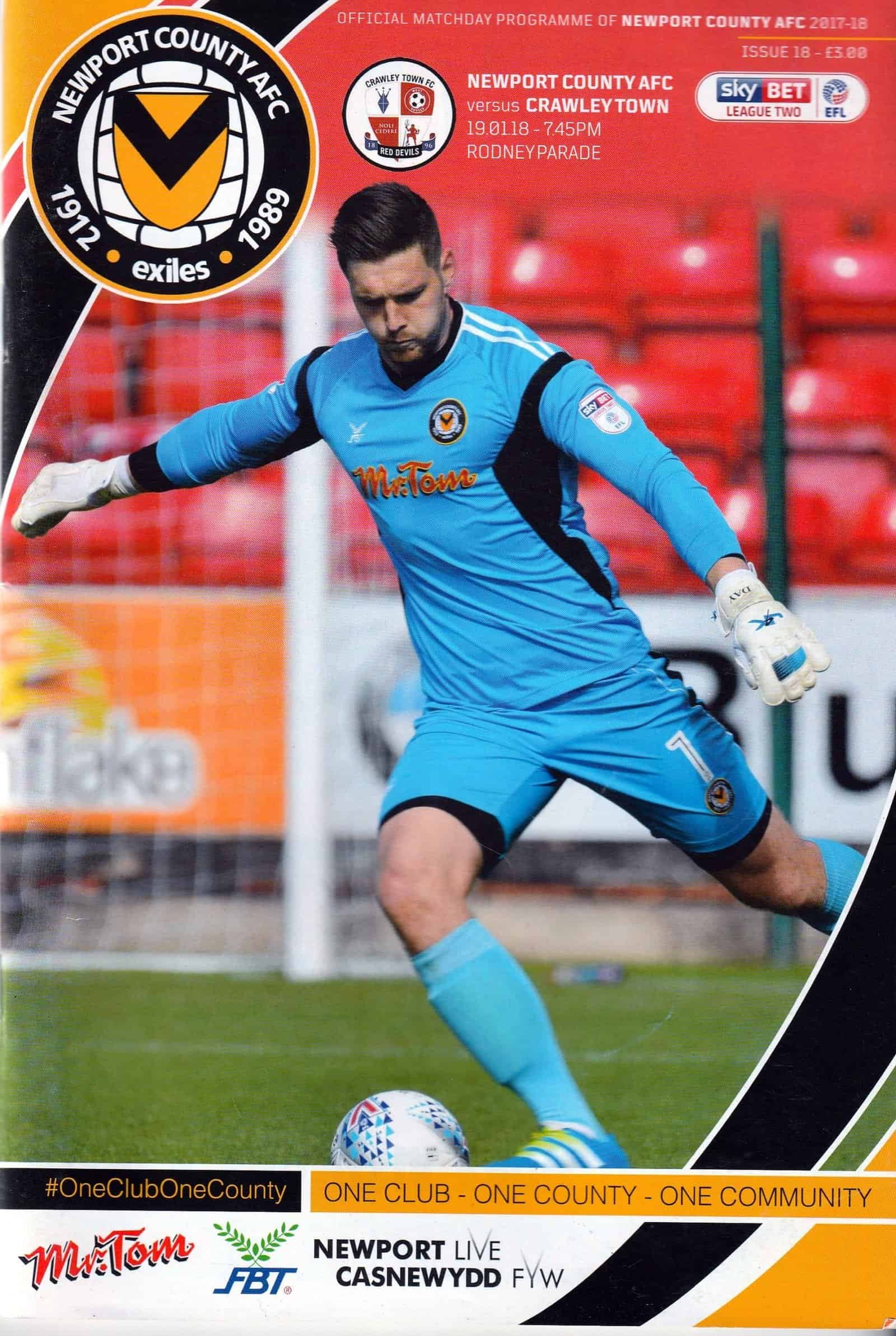 Match: Newport County v Crawley Town Competition: League 2 Date: 19-Jan-2018 Comments: Rating: 4 Condition: Very good Weight in grams: 180