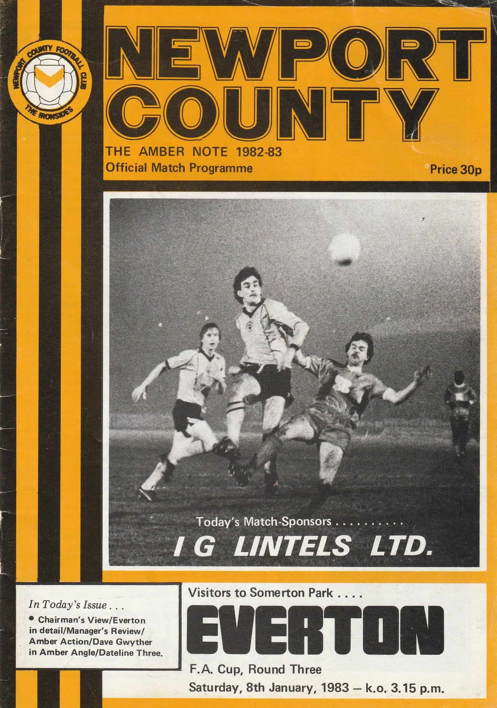 Match: Newport County v Everton Competition: FA Cup 3rd Round Date: 08-Jan-1983 Comments: Rating: 3 Condition: Light handling wear on cover Weight in grams: 100