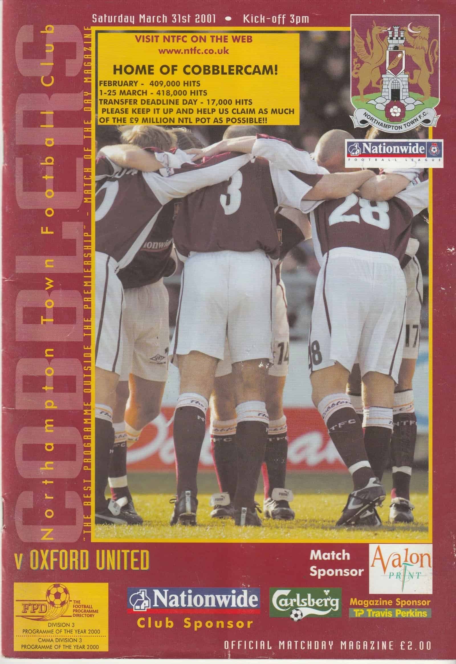 Match: Northampton Town v Oxford United Competition: League Division 3 Date: 31-Mar-2001 Comments: Rating: 3 Condition: Slight marks on cover Weight in grams: 260