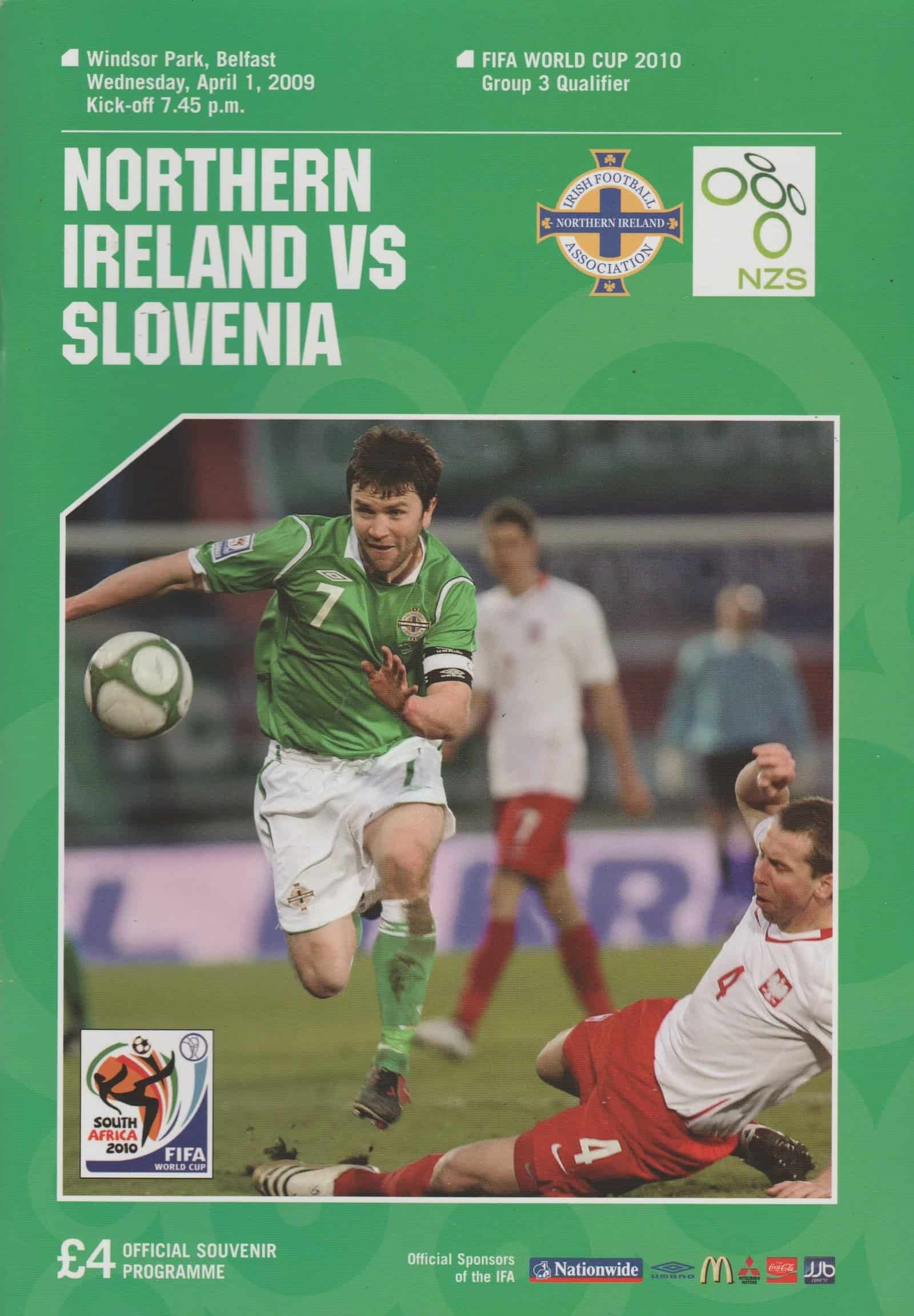 Match: Northern Ireland v Slovenia Competition: World Cup Qualifying Group 3 Date: 01-Apr-2009 Comments: Rating: 4 Condition: Very good Weight in grams: 120