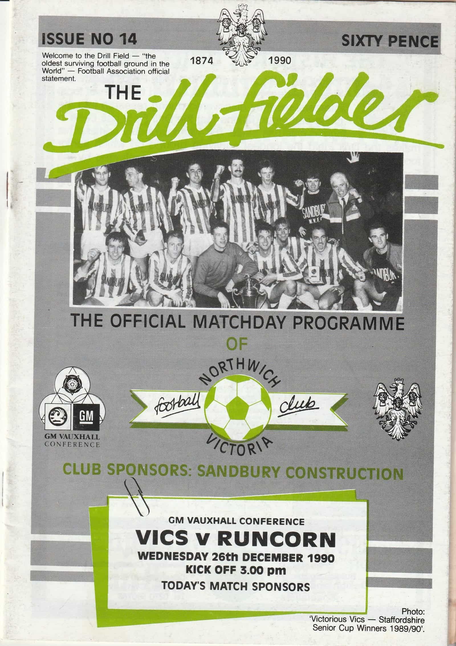 Match: Northwich Victoria v Runcorn Competition: GM Vauxhall Conference Date: 26-Dec-1990 Comments: Includes insert for rearranged fixture Rating: 4 Condition: Very good Weight in grams: 100