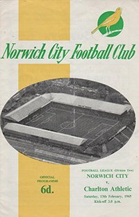 Match: Norwich City v Charlton Athletic Competition: League Division 2 Date: 13-02-1965 Comments: Rating: 3 Condition: Slight fold, Rusty staple Weight in grams: 40