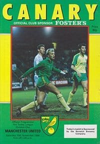 Match: Norwich City v Manchester United Competition: League Division 1 Date: 15-11-1986 Comments: Rating: 4 Condition: Very good Weight in grams: 100