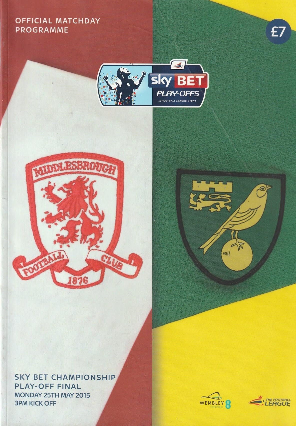 Match: Norwich City v Middlesbrough Competition: League Championship Play off Final Date: 25-May-2015 Comments: Rating: 3 Condition: Fold on corner of cover Weight in grams: 600