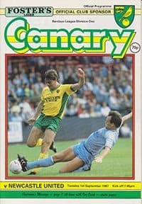 Match: Norwich City v Newcastle United Competition: League Division 1 Date: 01-09-1987 Comments: Rating: 4 Condition: Very good Weight in grams: 100
