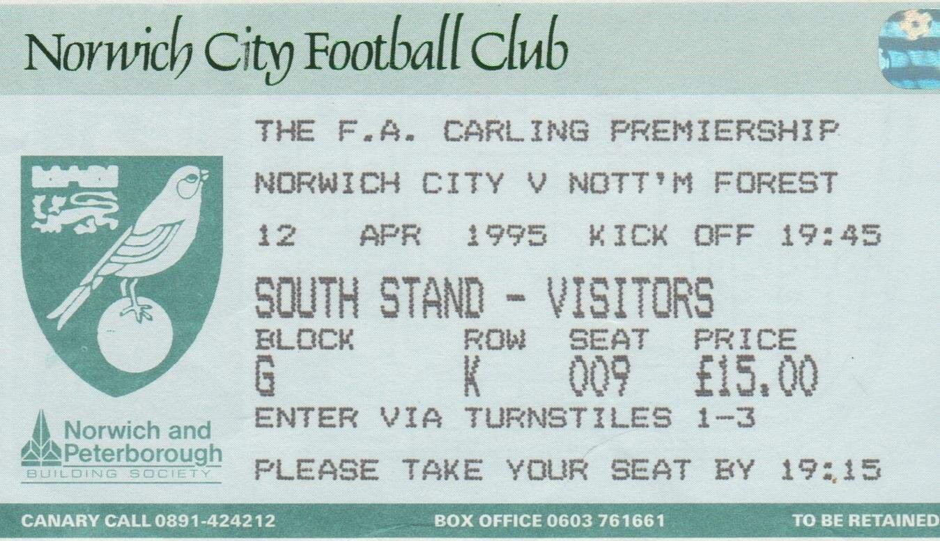 Match: Norwich City v Nottingham Forest Competition: Premier League Date: 12-Apr-1995 Comments: Rating: 4 Condition: Slight Folds Weight in grams: 10