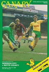 Match: Norwich City v Notts County Competition: League Division 1 Date: 14-03-1984 Comments: Rating: 4 Condition: Very good Weight in grams: 100