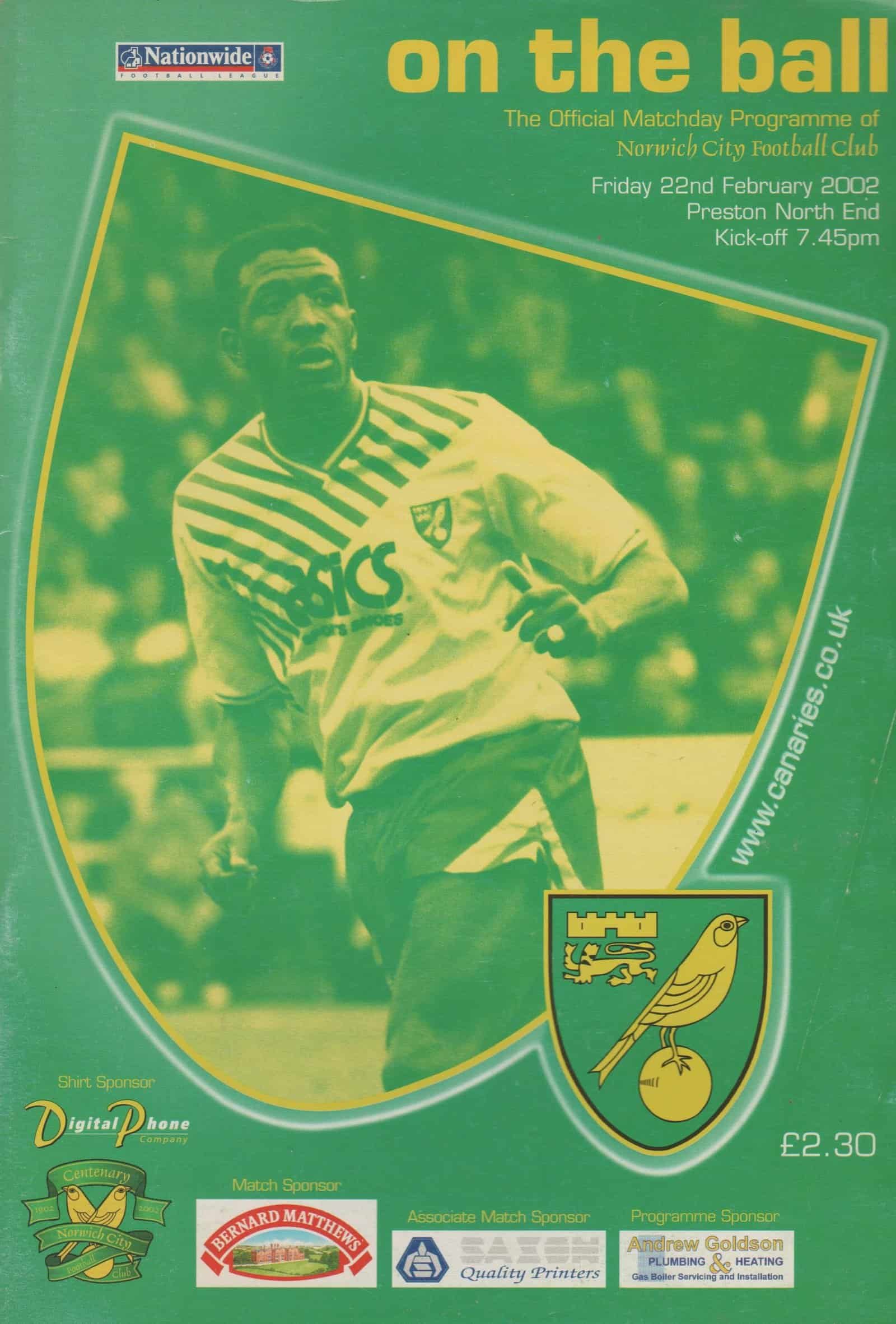 Match: Norwich City v Preston North End Competition: League Division 1 Date: 22-Feb-2002 Comments: Rating: 3 Condition: Faint corner fold on cover Weight in grams: 160