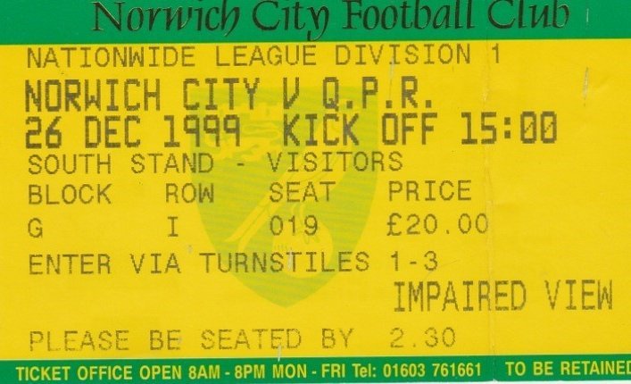 Match: Norwich City v Queens Park Rangers Competition: League Division 1 Date: 26-12-1999 Comments: Rating: 3 Condition: Fold Weight in grams: 10
