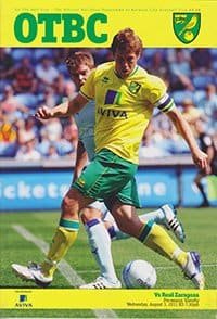 Match: Norwich City v Real Zaragoza Competition: Friendly Date: 03-08-2011 Comments: Joint programme for 2 friendly games Rating: 2 Condition: Hole on back page Weight in grams: 120