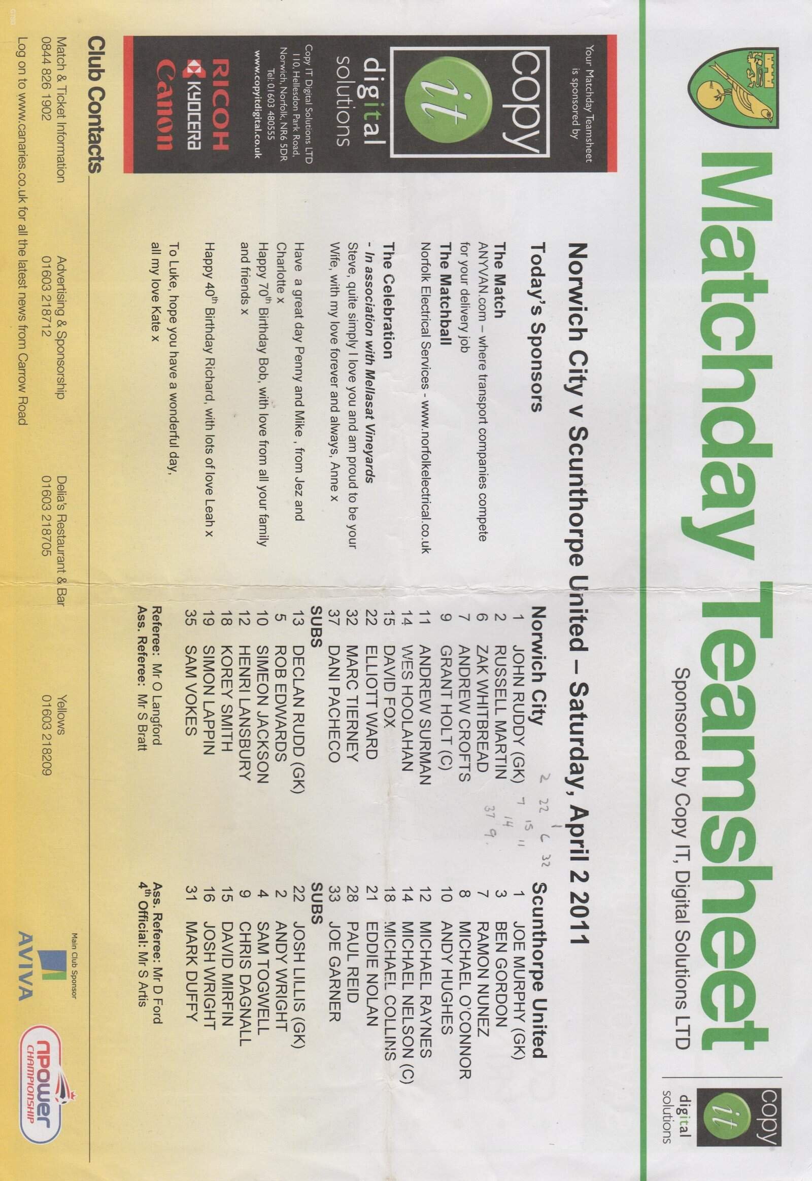 Match: Norwich City v Scunthorpe United