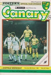 Match: Norwich City v Sheffield Wednesday Competition: League Division 1 Date: 26-03-1988 Comments: Rating: 4 Condition: Very good Weight in grams: 100