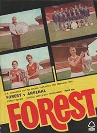 Match: Nottingham Forest v Arsenal Competition: FA Cup 5th Round Date: 17-02-1979 Comments: Postponed issue Rating: 4 Condition: Very good Weight in grams: 80