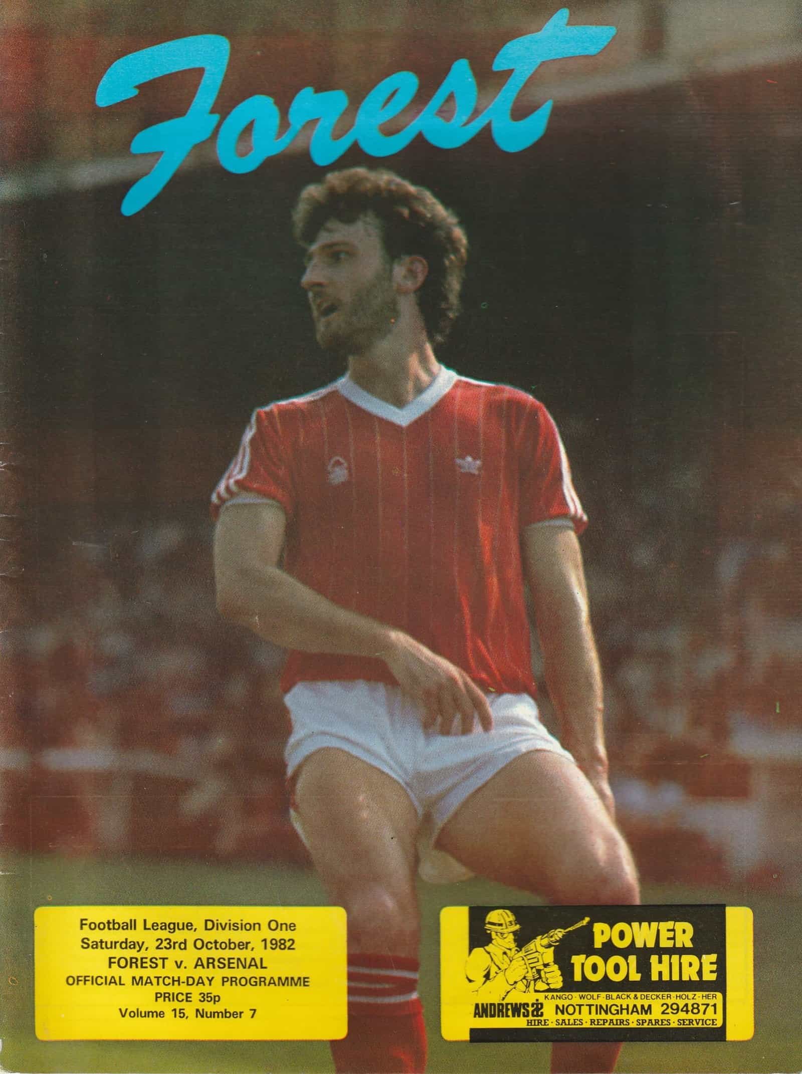 Match: Nottingham Forest v Arsenal Competition: League Division 1 Date: 23-Oct-1982 Comments: Rating: 4 Condition: Very good Weight in grams: 100