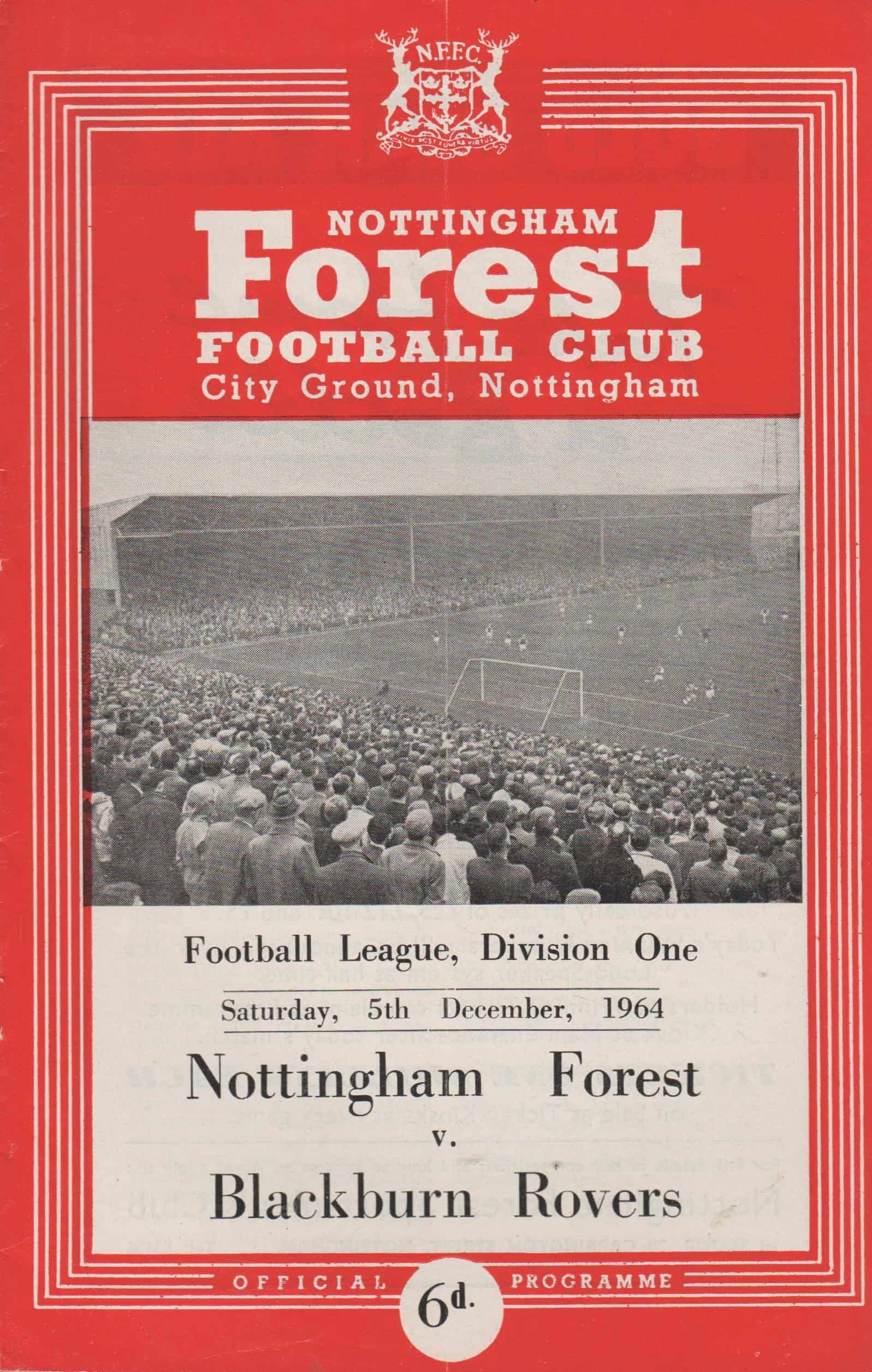 Match: Nottingham Forest v Blackburn Rovers Competition: League Division 1 Date: 05-12-1964 Comments: Rating: 4 Condition: Very good Weight in grams: 60
