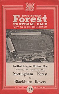 Match: Nottingham Forest v Blackburn Rovers Competition: League Division 1 Date: 09-09-1961 Comments: Rating: 4 Condition: Very good Weight in grams: 60