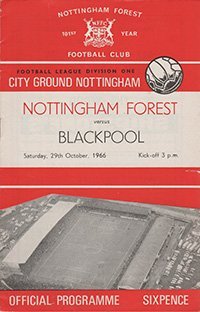 Match: Nottingham Forest v Blackpool Competition: League Division 1 Date: 29-10-1966 Comments: Rating: 3 Condition: Slightr tear on edge Weight in grams: 60