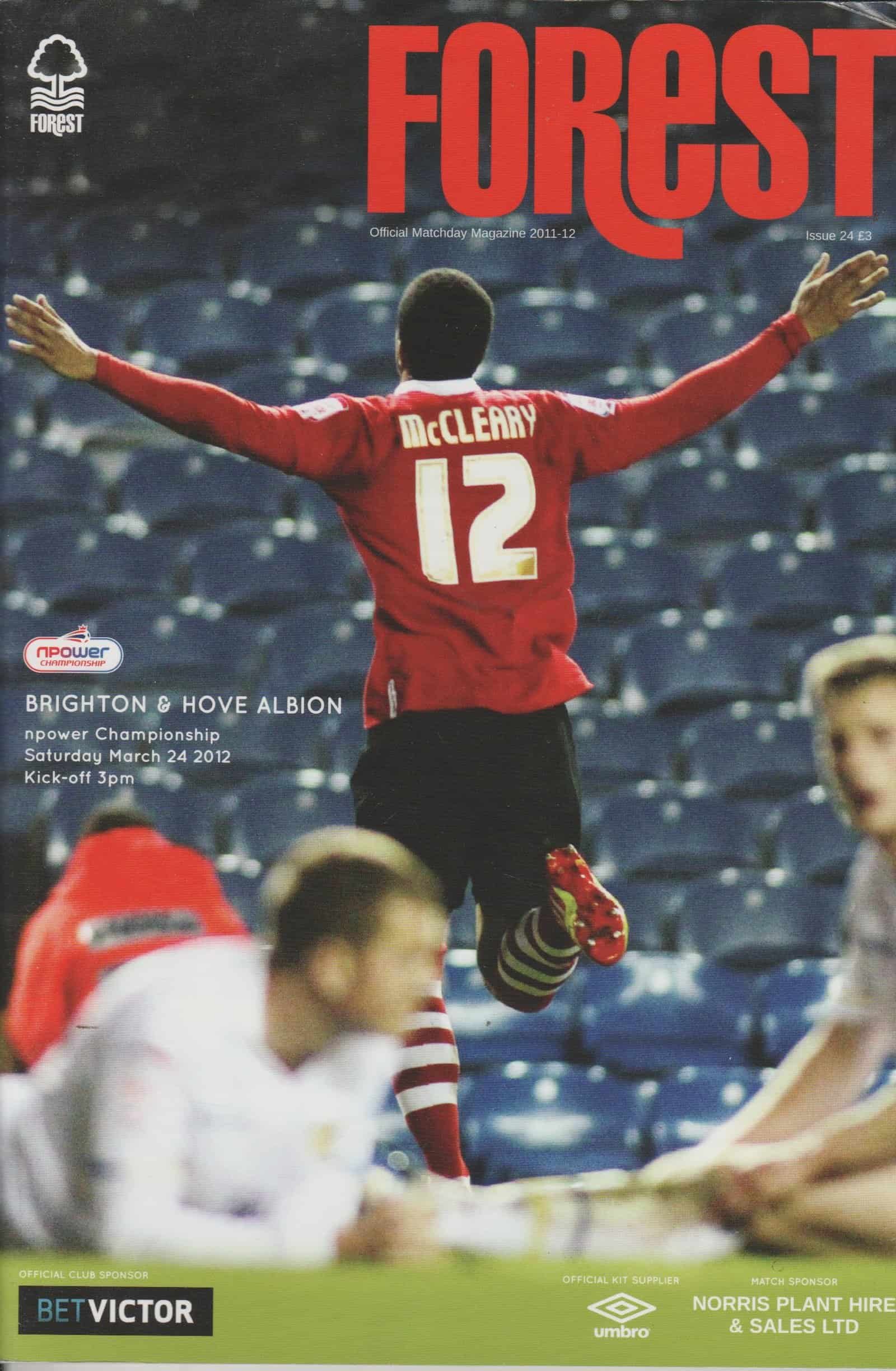 Match: Nottingham Forest v Brighton and Hove Albion Competition: League Championship Date: 24-Mar-2012 Comments: Rating: 3 Condition: Corner crease Weight in grams: 160