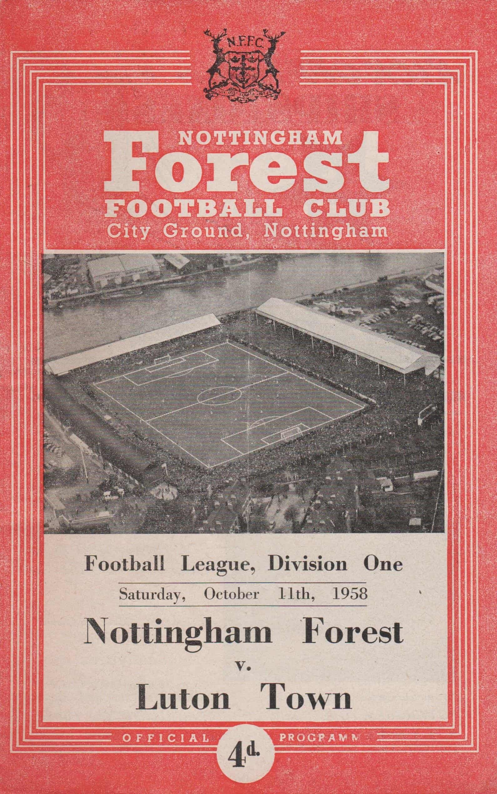 Match: Nottingham Forest v Luton Town Competition: League Division 1 Date: 11-Oct-1958 Comments: Rating: 3 Condition: Fold, team changes Weight in grams: 40