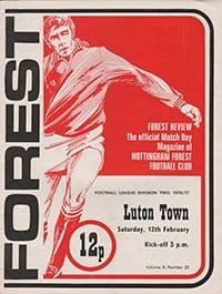 Match: Nottingham Forest v Luton Town Competition: League Division 2 Date: 12-02-1977 Comments: Rating: 4 Condition: Good Weight in grams: 60