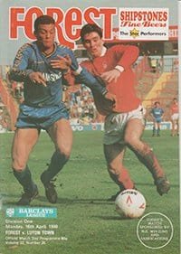 Match: Nottingham Forest v Luton Town Competition: League Division 1 Date: 16-04-1990 Comments: Rating: 4 Condition: Foxing on back page Weight in grams: 100