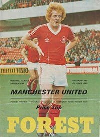 Match: Nottingham Forest v Manchester United Competition: League Division 1 Date: 04-10-1980 Comments: Rating: 4 Condition: Slight fold Weight in grams: 60