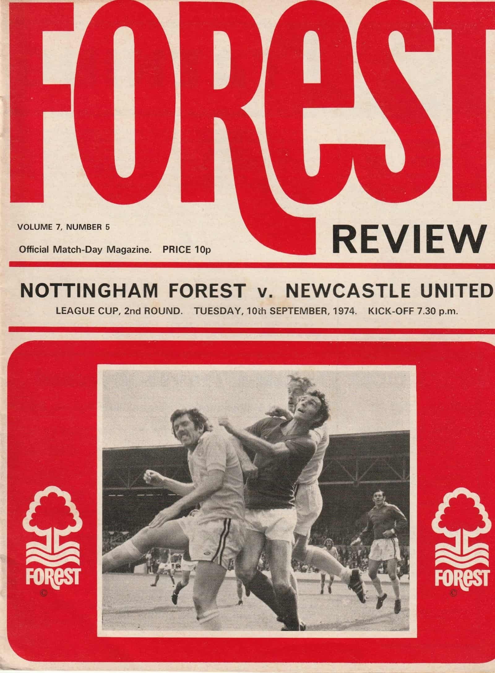Match: Nottingham Forest v Newcastle United Competition: League Cup 2nd Round Date: 10-Sep-1974 Comments: Rating: 3 Condition: Browning on top edge of cover Weight in grams: 100