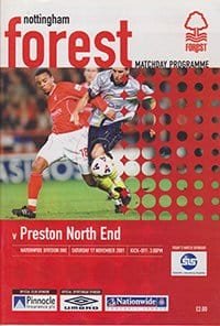 Match: Nottingham Forest v Preston North End Competition: League Division 1 Date: 17-11-2001 Comments: Rating: 4 Condition: Fold on corner of front page Weight in grams: 140