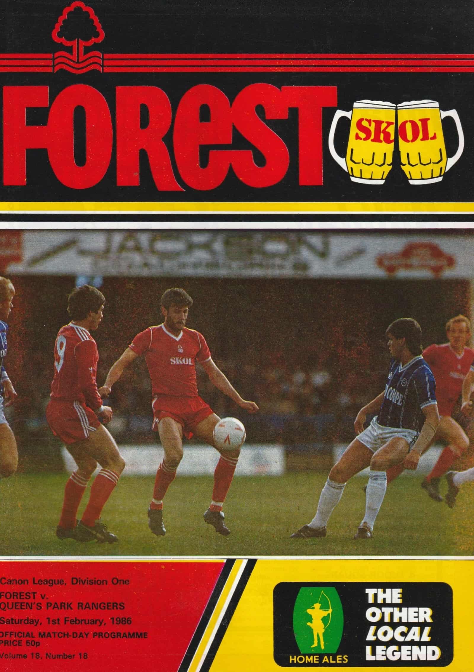 Match: Nottingham Forest v Queens Park Rangers Competition: League Division 1 Date: 01-Feb-1986 Comments: Rating: 4 Condition: Very good Weight in grams: 120