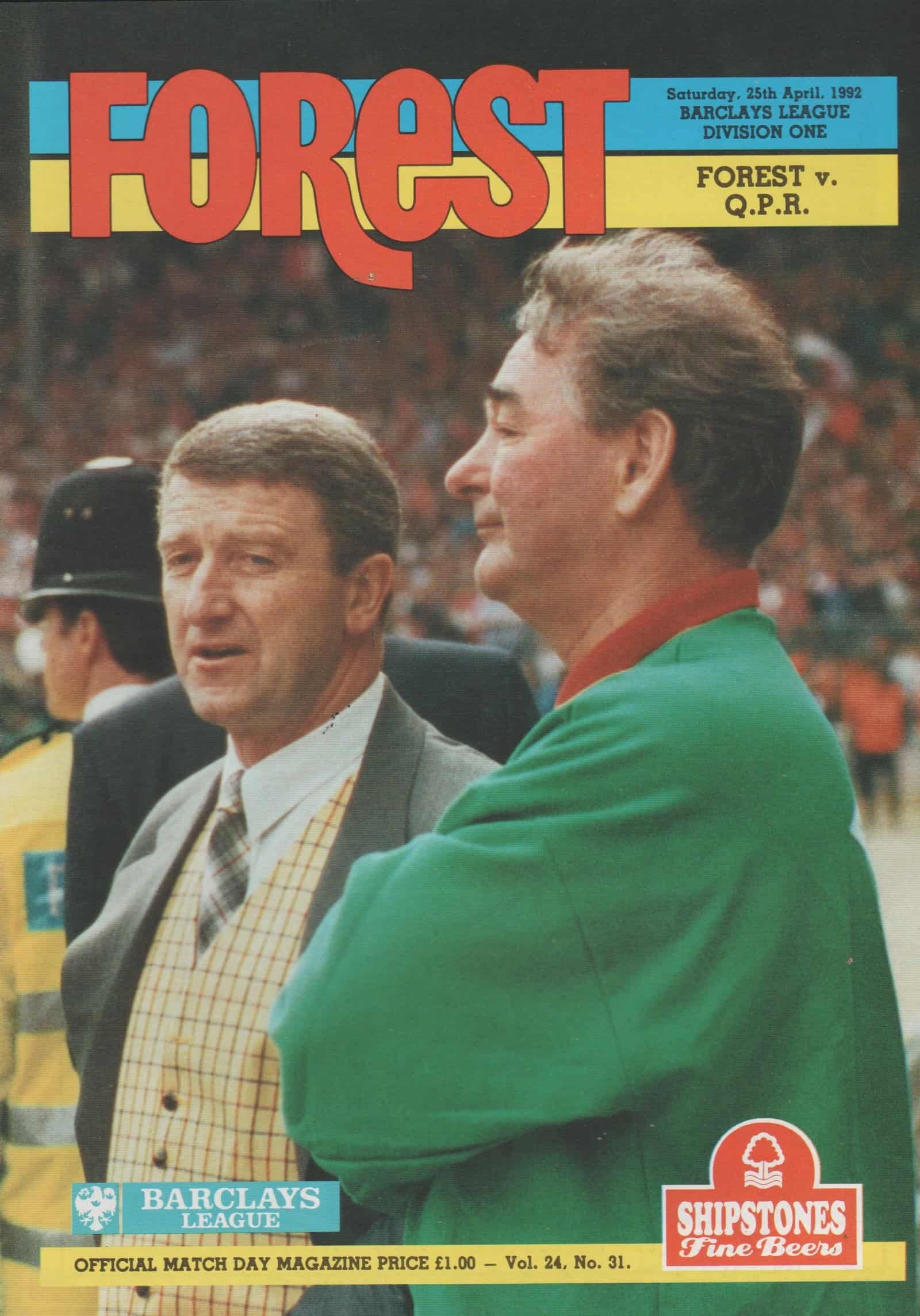 Match: Nottingham Forest v Queens Park Rangers Competition: League Division 1 Date: 25-Apr-1992 Comments: Rating: 4 Condition: Very good Weight in grams: 100