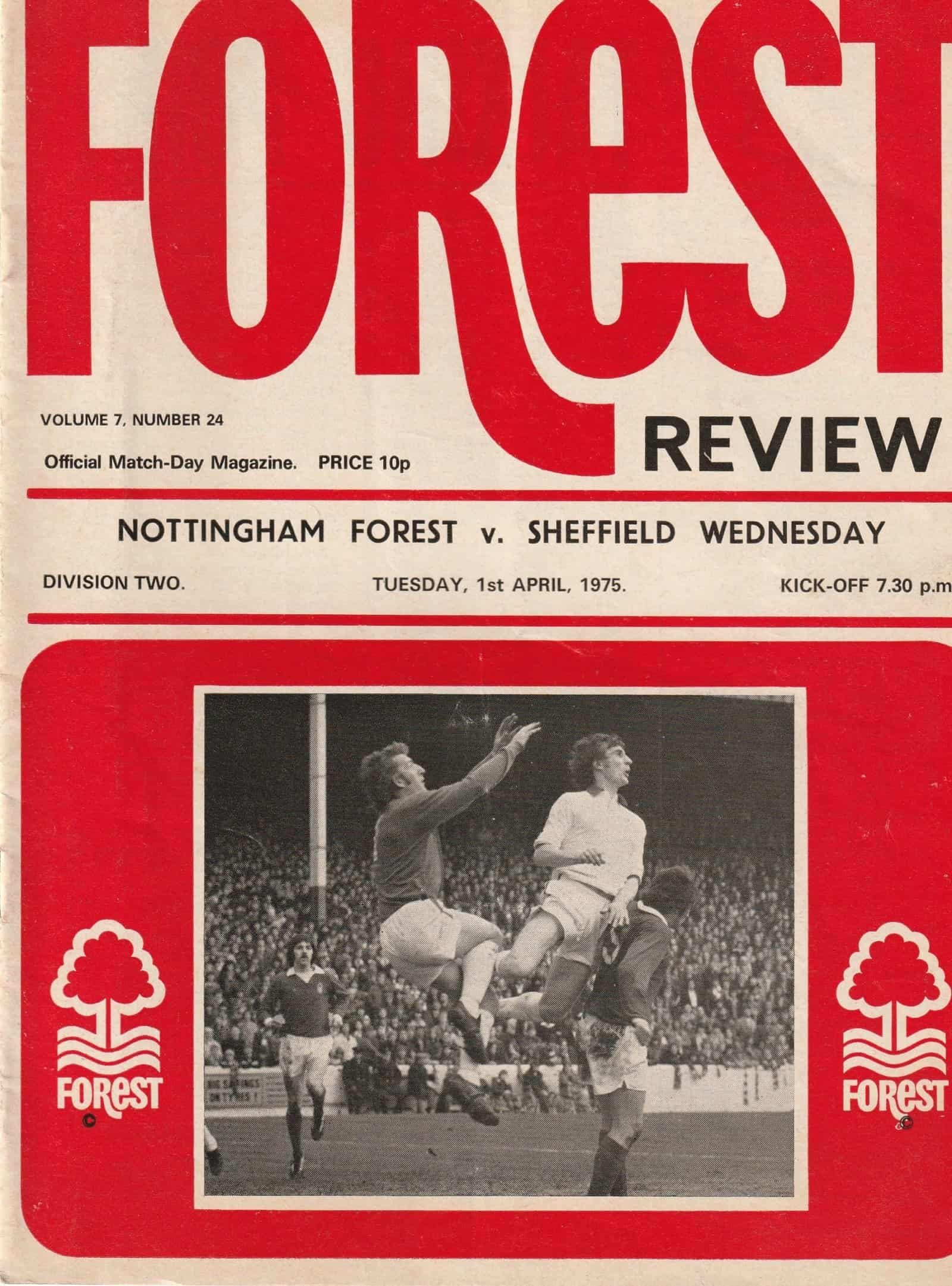 Match: Nottingham Forest v Sheffield Wednesday Competition: League Division 2 Date: 01-Apr-1975 Comments: Rating: 4 Condition: Light fold Weight in grams: 60