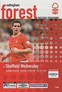 Match: Nottingham Forest v Sheffield Wednesday Competition: League Division 1 Date: 31-10-2001 Comments: Rating: 4 Condition: Very good Weight in grams: 140