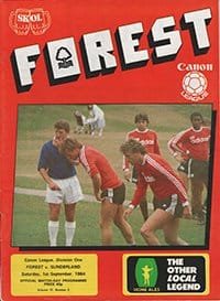 Match: Nottingham Forest v Sunderland Competition: League Division 1 Date: 01-09-1984 Comments: Rating: 3 Condition: Split on spine Weight in grams: 100