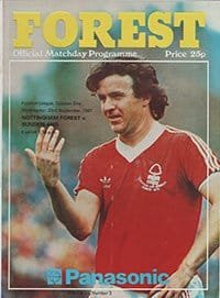 Match: Nottingham Forest v Sunderland Competition: League Division 1 Date: 23-09-1981 Comments: Rating: 4 Condition: Very good Weight in grams: 100