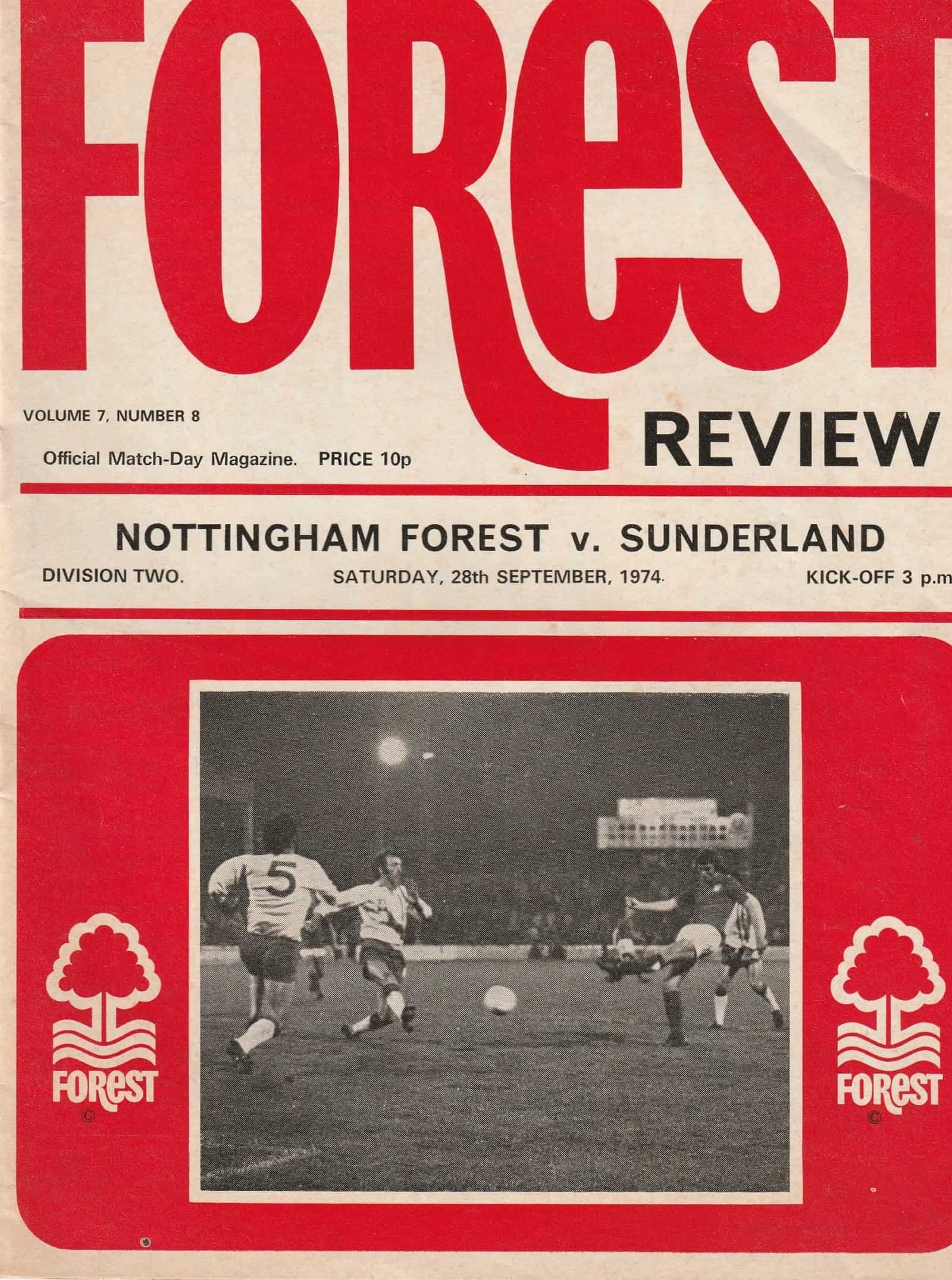 Match: Nottingham Forest v Sunderland Competition: League Division 2 Date: 28-Sep-1974 Comments: Rating: 4 Condition: Light handling wear Weight in grams: 80