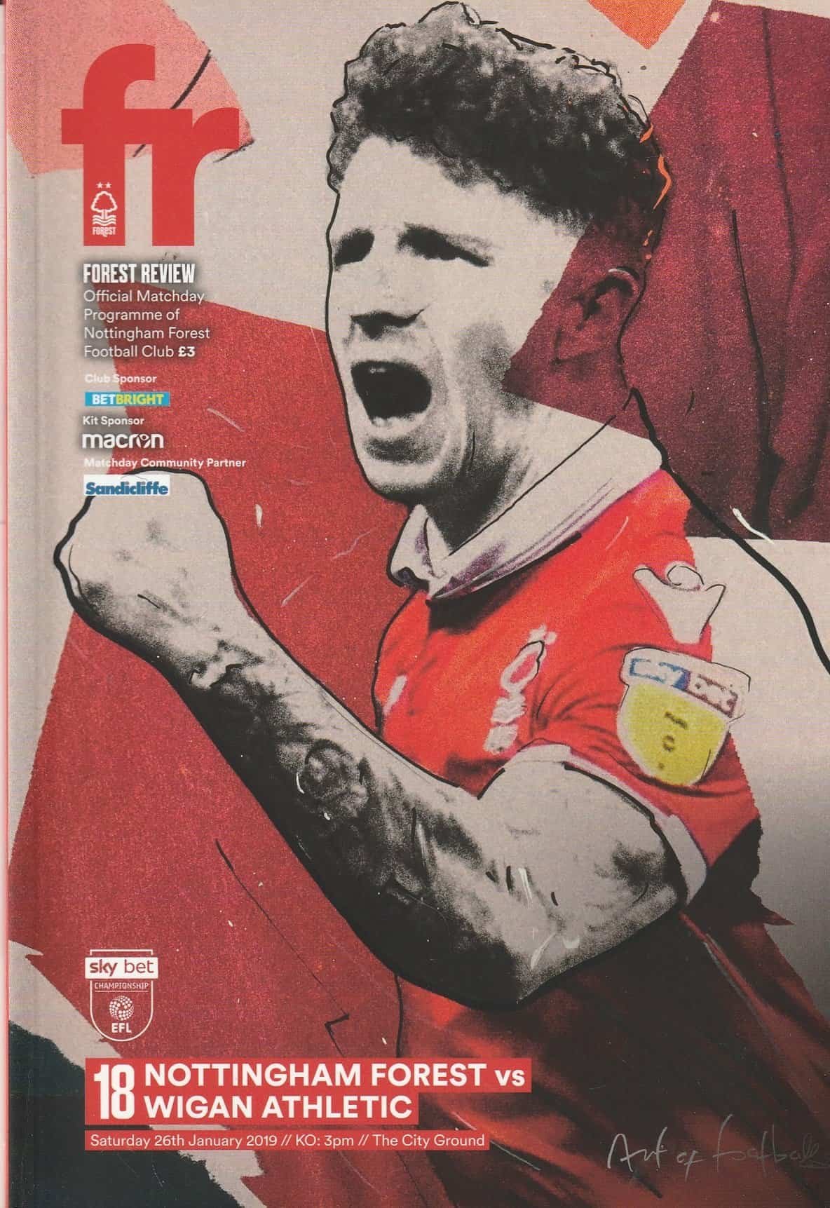 Match: Nottingham Forest v Wigan Athletic Competition: SkyBet League Championship Date: 26-Jan-2019 Comments: Rating: 4 Condition: Very good Weight in grams: 240