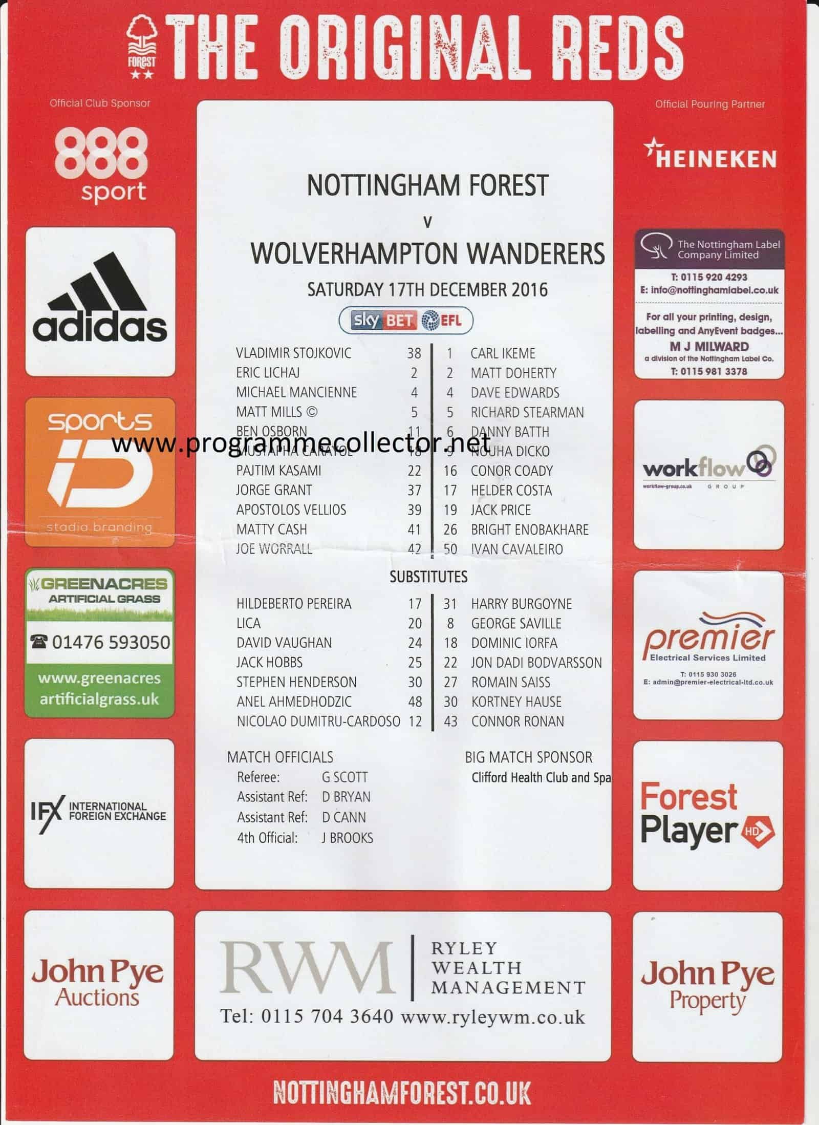 Match: Nottingham Forest v Wolverhampton Wanderers Competition: League Championship Date: 17-Dec-2016 Comments: Rating: 4 Condition: Fold Weight in grams: 20