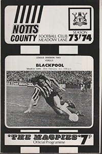 Match: Notts County v Blackpool Competition: League Division 2 Date: 23-02-1974 Comments: Rating: 3 Condition: Staples removed, team changes Weight in grams: 60