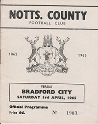 Match: Notts County v Bradford City Competition: League Division 3 Date: 03-04-1965 Comments: Rating: 4 Condition: Rusty staple Weight in grams: 40