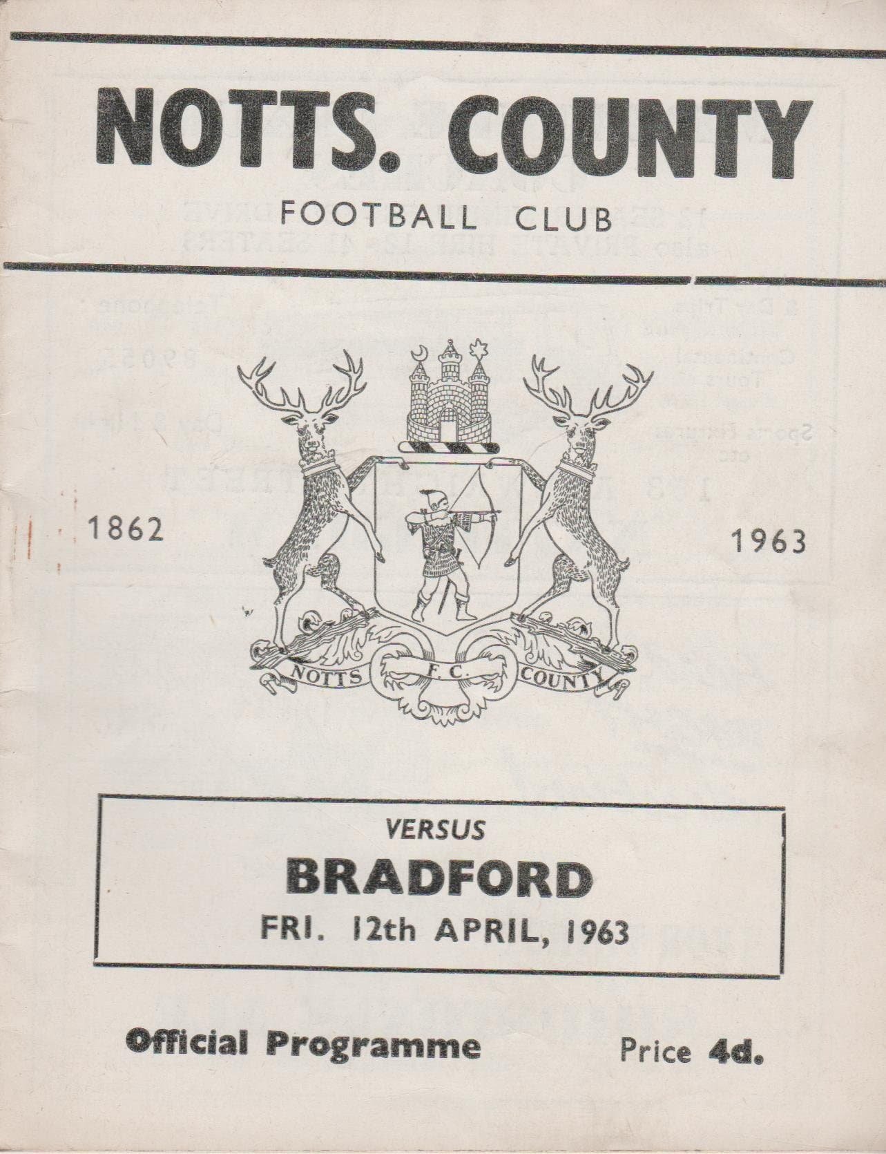 Match: Notts County v Bradford Park Avenue Competition: League Division 3 Date: 12-Apr-1963 Comments: Rating: 3 Condition: Team changes Weight in grams: 60