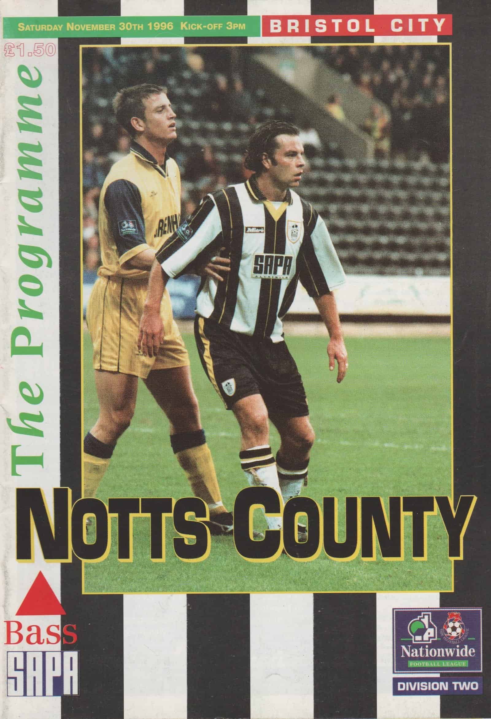 Match: Notts County v Bristol City Competition: League Division 2 Date: 30-Nov-1996 Comments: Rating: 4 Condition: Very good Weight in grams: 120