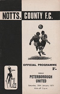 Match: Notts County v Peterborough United Competition: League Division 4 Date: 30-01-1971 Comments: Rating: 4 Condition: Faint fold Weight in grams: 60
