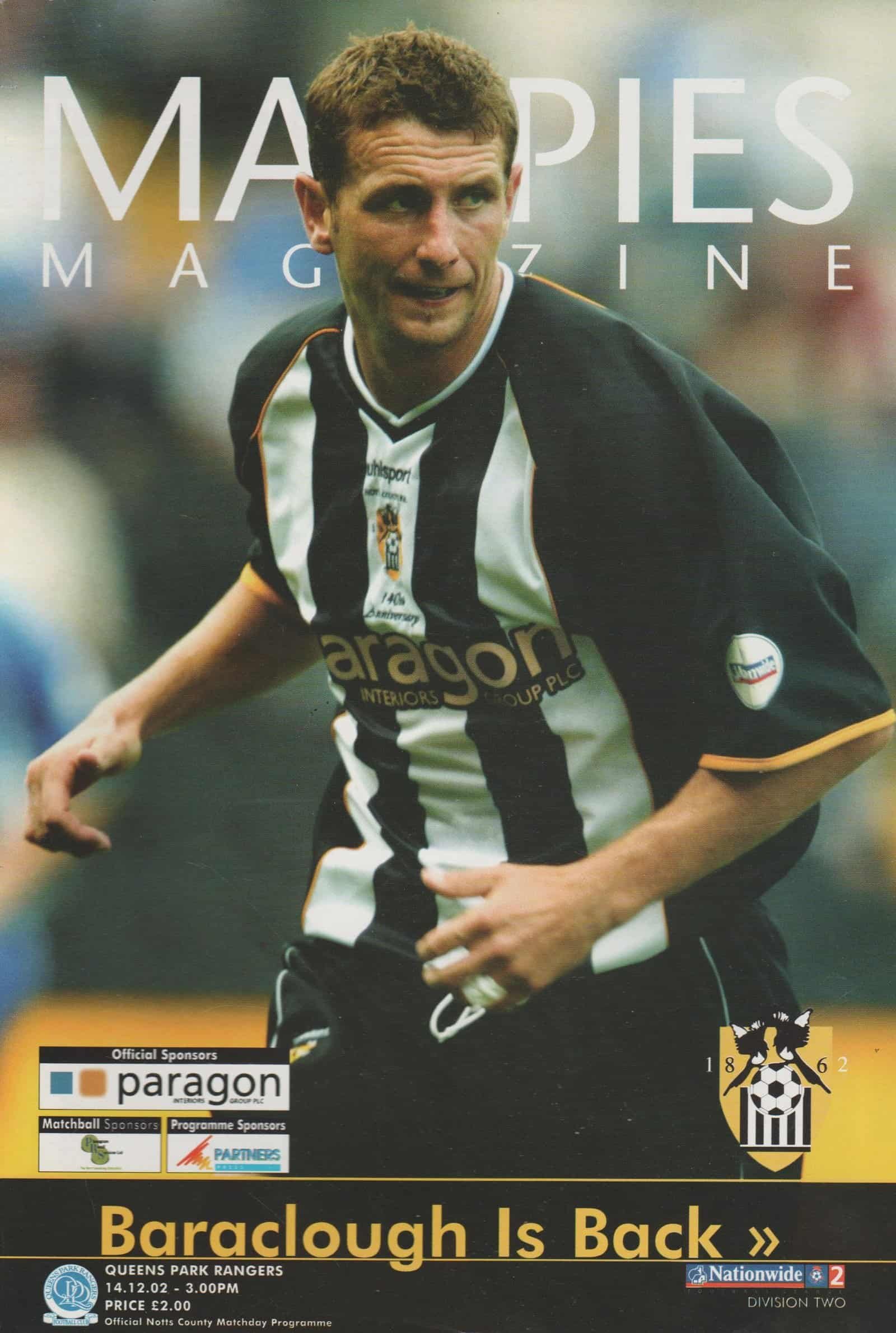 Match: Notts County v Queens Park Rangers Competition: League Division 2 Date: 14-Dec-2002 Comments: Rating: 4 Condition: Very good Weight in grams: 140
