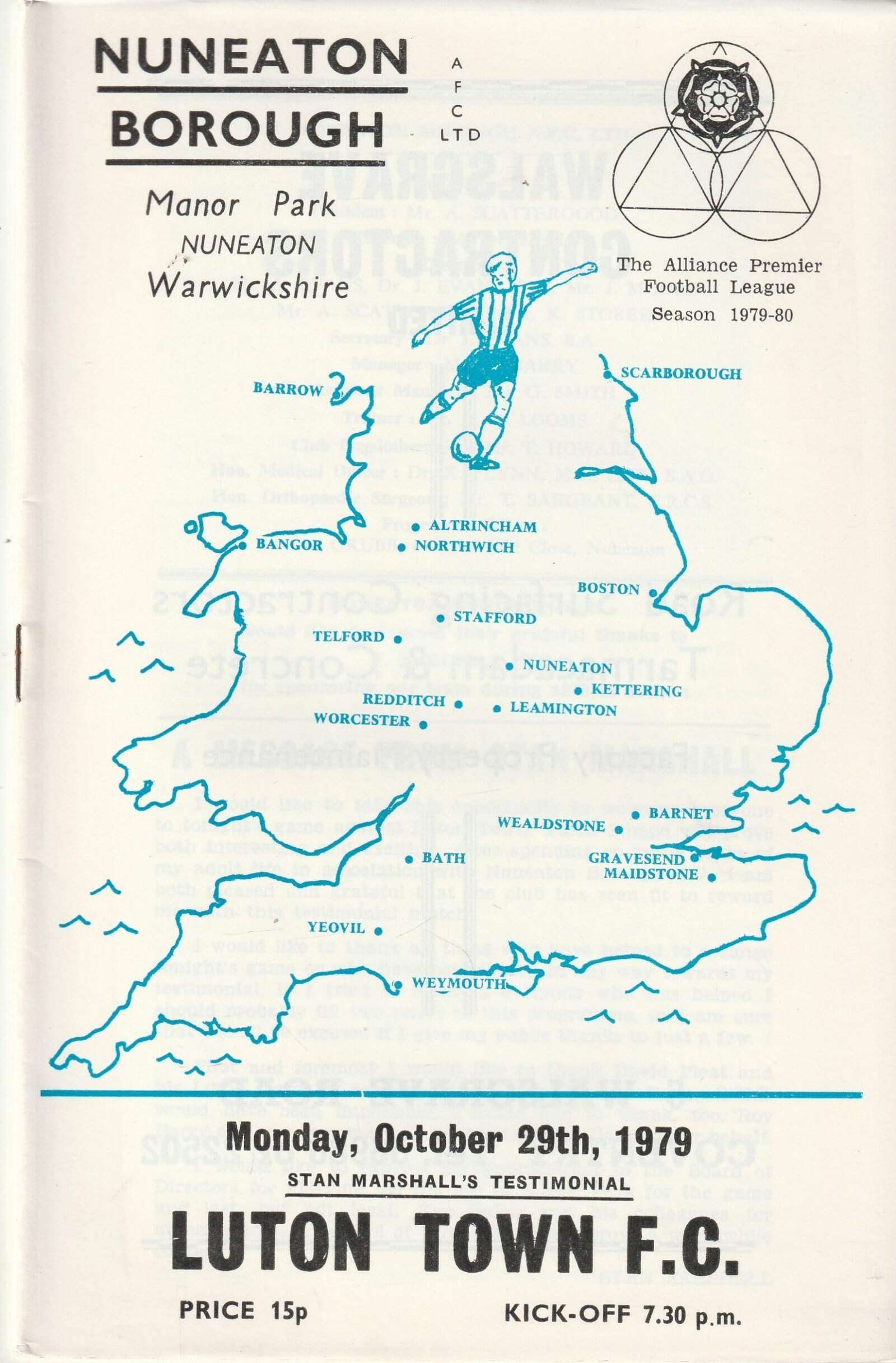 Match: Nuneaton Borough v Luton Town Competition: Friendly Date: 29-Oct-1979 Comments: Stan Marshall Testimonial Match Rating: 4 Condition: Very good Weight in grams: 100