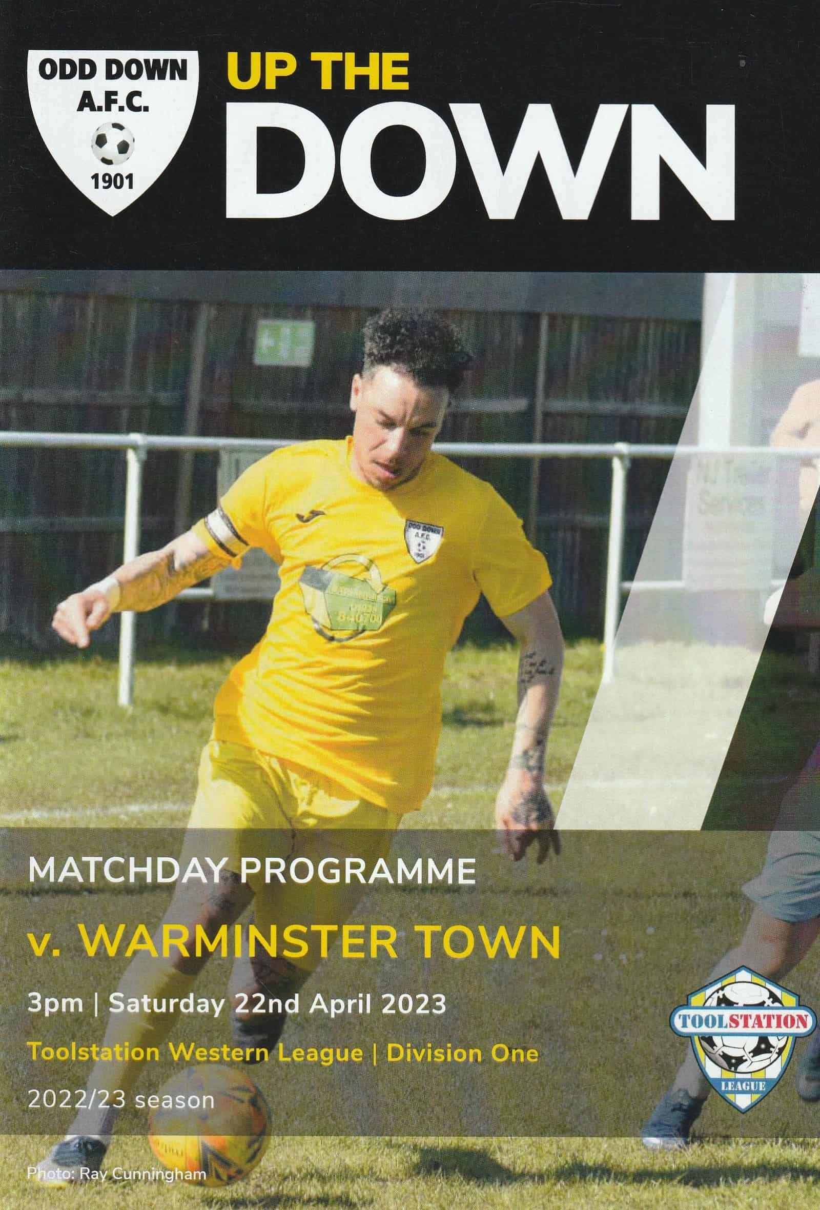 Match: Odd Down v Warminster Town Competition: Toolstation Western League Division 1 Date: 22-Apr-2023 Comments: Rating: 4 Condition: Very good Weight in grams: 140